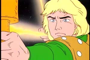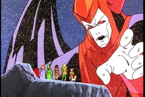 As the group's leader, the blonde, blue-eyed Hank is the staunch "good guy" of the series. Aside from the fact that his energy-firing bow is cool as hell, he can sometimes come across as boring. Fortunately, the writers do give him some examples to shine. The episode "The Traitor" had me worried at first, with its emphasis on cute, fuzzy Ewok-like creatures, but then it got very serious when Hank was put in the position of selling out his teammates to Venger's forces, breaking the others' hearts. The episode "The Dragon's Graveyard," considered a favorite by many, has the pressure getting to Hank, to the point where he turns his back on Dungeon Master and instead decides to take an offensive against Venger. Although it's never said, you can tell he's so filled with anger that he intends to go the distance and murder Venger. Here we have the show dealing with some dark, serious themes. Even though you know in your heart that Hank will still be on the right and true by the end, you have to give the writers credit for putting him through the wringer like that. Diana is the character with perhaps the least amount of development over the course of the series. It's not until the 21st episode that we get a script with her in the spotlight. Mostly, she's the cool-headed voice of reason. When the others don't want to head into some dangerous cave or dungeon, Diana is there to remind them of the importance of what they're doing and why they are there. She also has a sharp wit, and she usually has a comeback ready for any of Eric's sarcastic quips. As far as her powers are concerned, her javelin staff is mostly used to help her cross great distances and reach otherwise unobtainable heights, but not as an offensive weapon. This is true of the weapons in general. The kids use them in defensive ways, almost never to directly harm anyone else. Part of this is no doubt because of standards and practices, but it also reinforces the characters as heroes. When Diana uses the staff to jump across a crevasse to separate her from an enemy, instead of using it to whop her enemy on the head, it shows what kind of person she is.